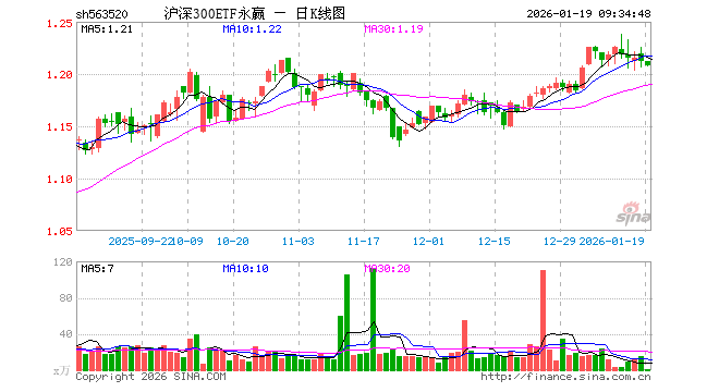 1月19日,沪深300ETF永赢(563520)开盘涨0.00%,报1.212元。沪深300ETF永赢(563520)重仓股方面,宁德时代开盘跌0.24%,贵州茅台跌0.01%,中国平安跌0.08%,招商银行涨0.03%,紫金矿业涨0.40%,新易盛跌1.25%,中际旭创跌1.94%,美的集团涨0.08%,东方财富跌0.38%,长江电力涨0.34%。