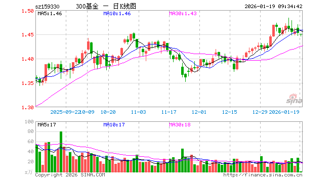 1月19日,沪深300ETF东财(159330)开盘跌0.14%,报1.451元。沪深300ETF东财(159330)重仓股方面,宁德时代开盘跌0.24%,贵州茅台跌0.01%,中国平安跌0.08%,招商银行涨0.03%,紫金矿业涨0.40%,新易盛跌1.25%,美的集团涨0.08%,中际旭创跌1.94%,东方财富跌0.38%,长江电力涨0.34%。
