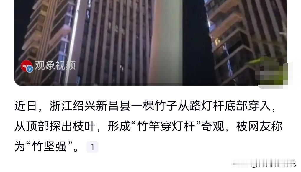 绝了绝了,这真的是太强了,如果不是在网上亲眼所见,我是万万不敢相信竟然能够强成这样。 近日,浙江绍兴新昌县,一竹子穿透路灯生长引关注。 这真的是不得不服啊,让人感受到了如此坚强的生命力和强大的韧性。 竟然还能够转弯。随着环境而改变状态。 我们人类要学习这种坚强和灵活适应环境的状态。