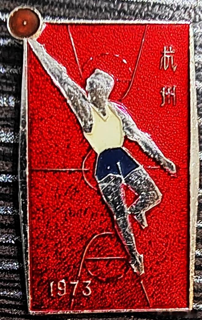 篮球捡史 1973年11月5日—20日,全国篮球联赛第二阶段分别在杭州、南昌、合肥,11月5日—26日在成都举行,比赛采用单循环制。其中杭州赛区为男、女篮前12名排位赛,图为1973年全国篮球联赛(杭州赛区)纪念章。