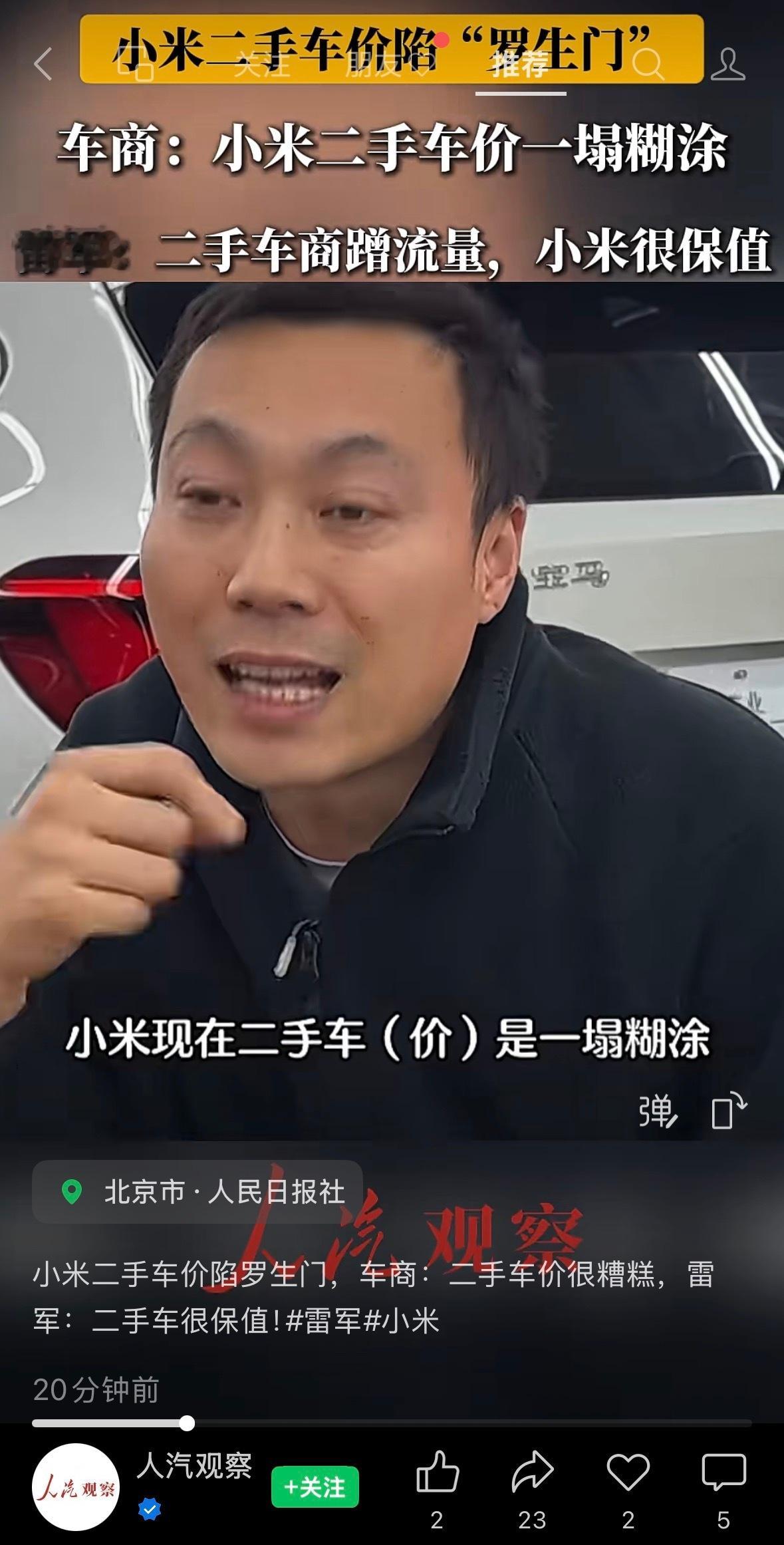 小米二手车价大跳水 人汽观察:小米二手车降价罗生门,到底谁说了真话?