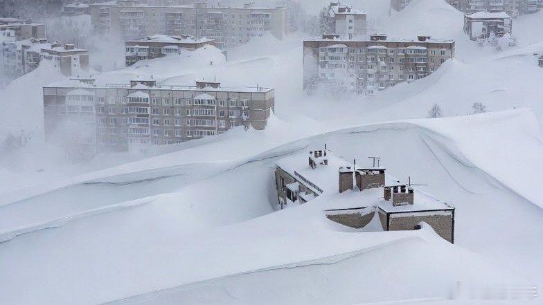 俄罗斯一地暴雪堆出公寓楼高雪坡不是……我勒个去这真的不是AI出来的吗??????