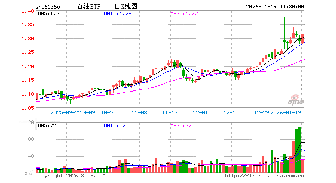 1月19日,截止午间收盘,石油ETF(561360)涨2.02%,报1.313元,成交额4385.97万元。石油ETF(561360)重仓股方面,中国海油截止午盘涨0.10%,中国石油涨0.00%,中国石化涨0.51%,杰瑞股份涨4.79%,招商轮船涨2.85%,广汇能源涨0.00%,中远海能涨4.28%,恒力石化涨6.14%,招商南油涨2.47%,海油工程涨3.02%。