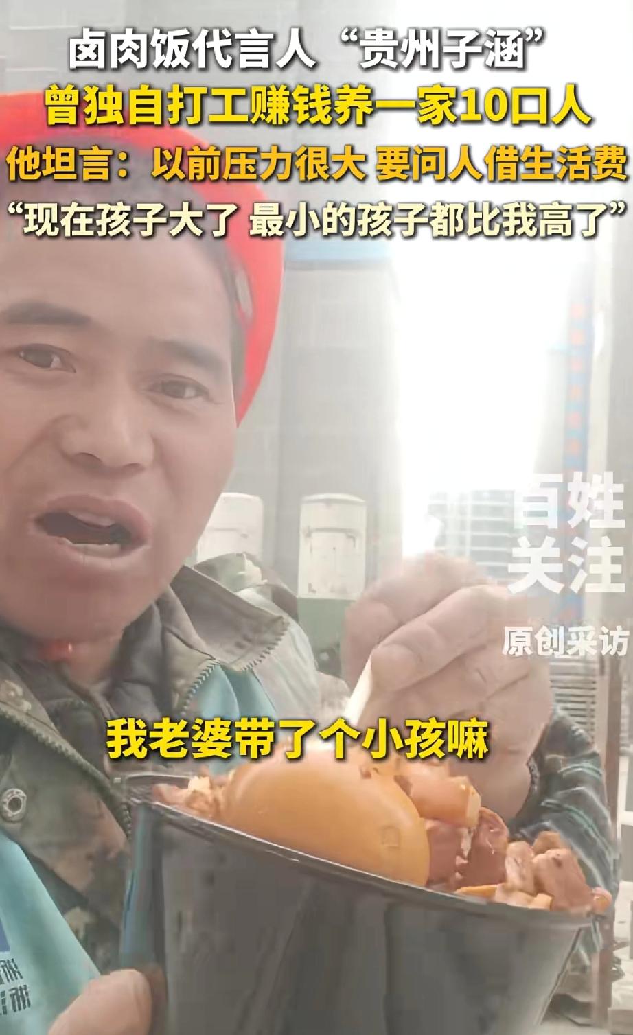 贵州子涵大叔把绝大部分的钱,寄给老婆养8个孩子,所以他每个月的生活费只有900,有时不够,还要向工友借生活费,因此他很珍惜每一顿10元的卤肉饭! 大叔今年58岁,靠在工地拉钢管挣钱,大叔妻子说,她在家一直告诉孩子,父亲在工地上班很辛苦,让孩子们长大孝顺父亲,还让孩子们节约花钱。 但是大叔却说,花嘛!孩子们慢慢大了,有些地方是要花钱,所有孩子不管是不是亲生的都一视同仁。 好在现在有几个孩子也成家也有的找了工作。 大叔应大家建议,等放假回家,也想做一场杀猪宴,远嫁的大女儿知道这件事担心父亲钱不够买猪,还想给父亲打钱,但是大叔拒绝了,因为他也知道孩子不容易。 感觉大叔累是累,但是日子过得敞亮,从不内耗,这也是一种幸福!
