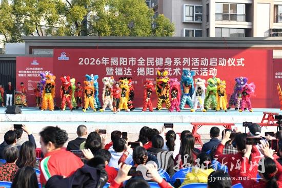 18日上午,揭东区榕泰全民健身广场锣鼓喧天,福达·揭阳市武术展示活动在这里举行(见图。郑楚藩摄),拉开了2026年揭阳市全民健身系列活动的序幕,让大家近距离感受“武术之乡”的实力与文化魅力。据悉,即日起至马年春节期间,全市将推出30场赛事活动,为市民游客带来一道“体育+”文化大餐。
