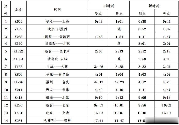 四、沧州站时刻变化14列,变化情况如下: