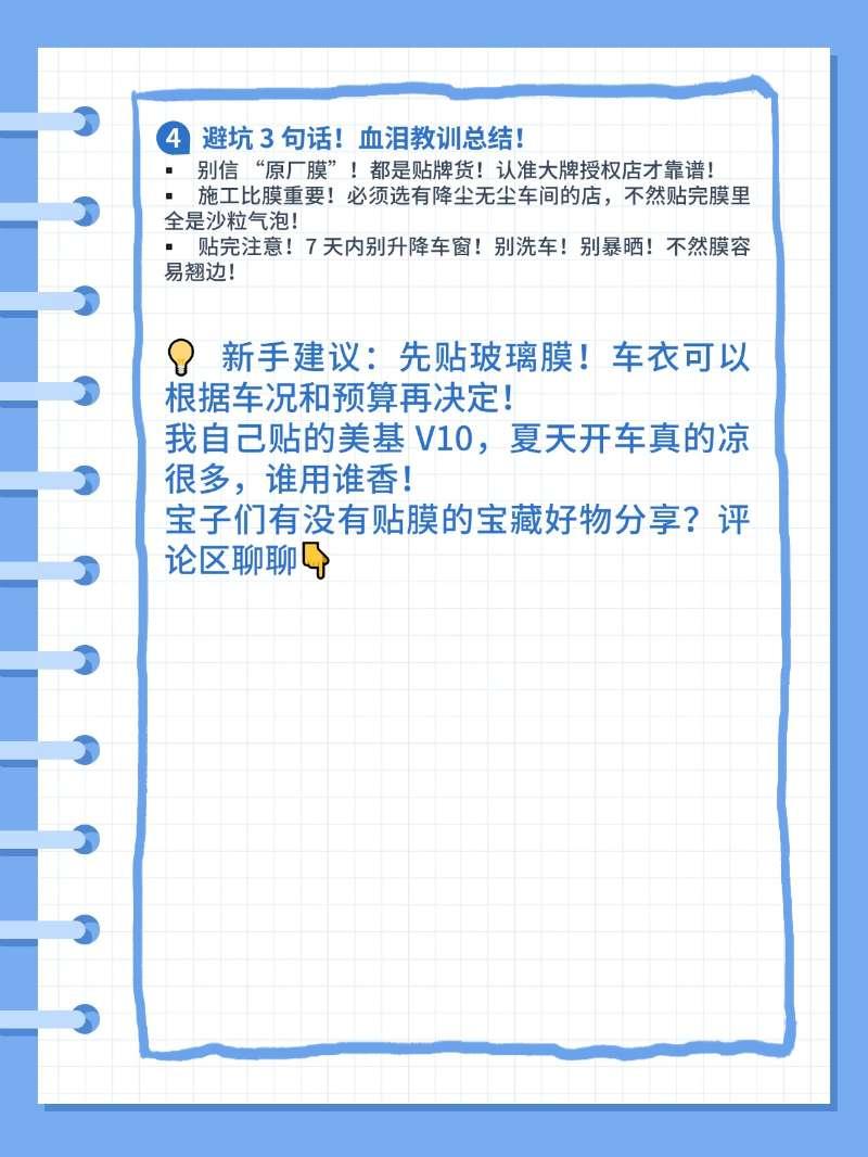 新手贴膜保姆级指南🚗 选膜不踩坑!抄作业就行!宝子们!刚提新车是不是纠结贴膜?选什么膜?花多少钱?怕被坑?这份超全指南手把手教你,看完直接闭眼冲!【来自懂车帝车友圈】