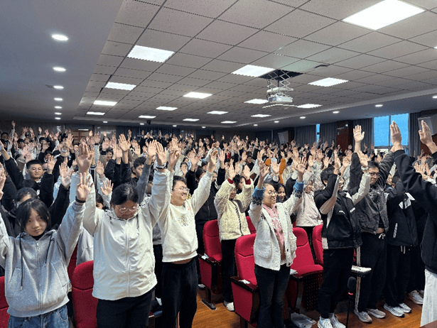 在互动环节,有同学提出“担心考试失利被嘲笑”的困惑。潘老师以“接纳失败是强者思维”的观点予以回应:“接纳失败,不代表放弃努力,而是停止自我内耗的智慧。它能让你们更理性地分析问题,更有力地向前迈进。”她分享了自己学生时代一次考试失利后,通过“错题溯源+方法调整+心态重建”实现逆袭的故事,鼓励大家“把挫折当作成长的阶梯,而非人生的绊脚石”。