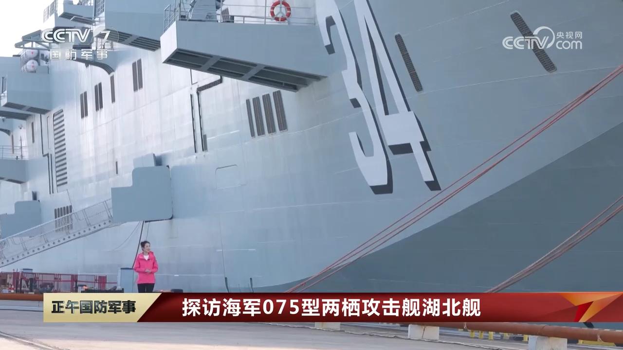 央视最新的新闻报道中,专题介绍了075级两栖攻击舰的四号舰——34号湖北舰。主持