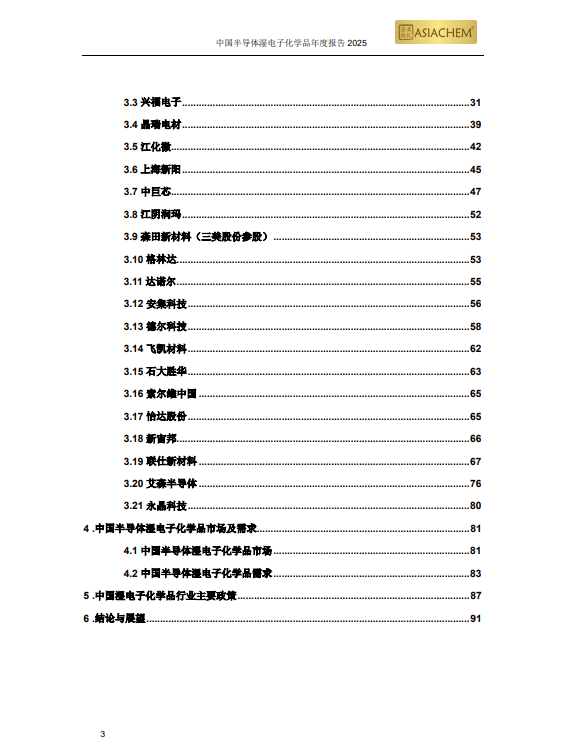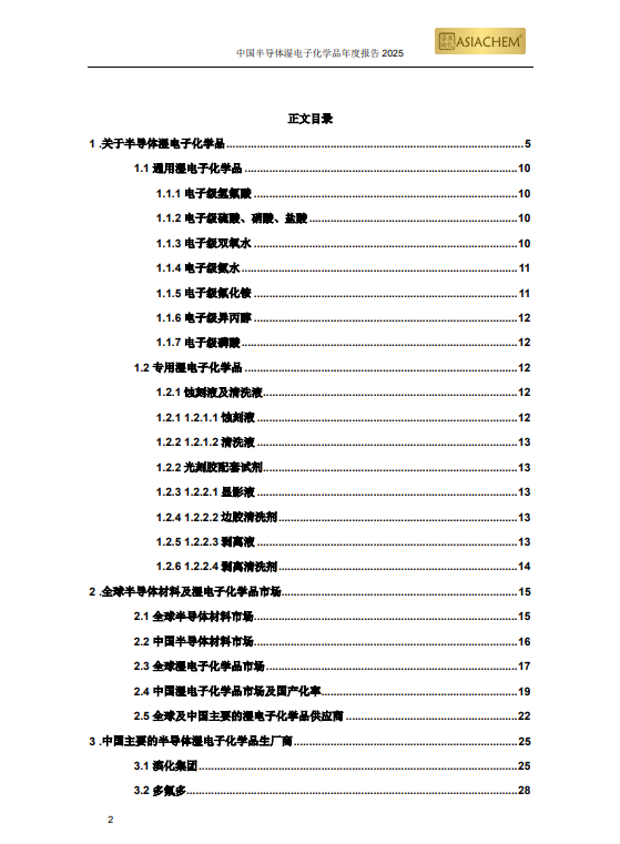 《中国半导体湿电子化学品年度报告2025》目录如下: