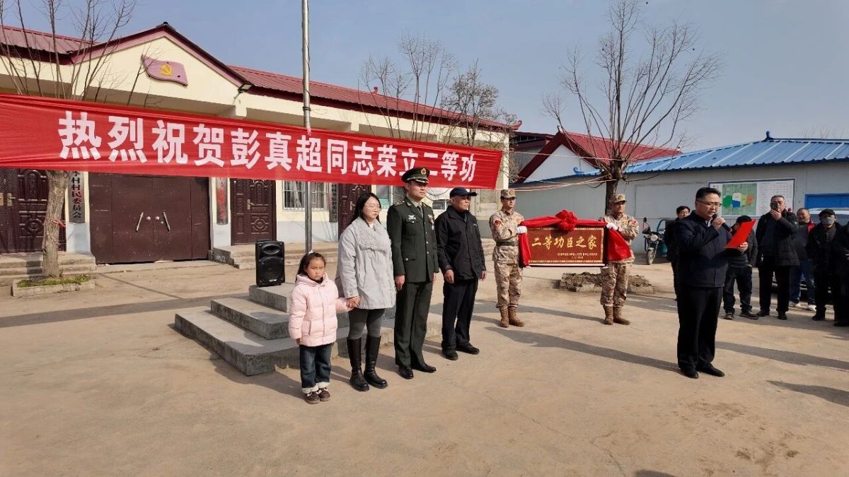 锣鼓喧天传荣耀,拥军优属暖人心。1月16日上午,漯河舞阳县侯集镇寨李村村室广场上人声鼎沸、欢声阵阵,处处洋溢着喜庆热烈的氛围。一条“热烈祝贺彭真超同志荣立二等功”的鲜艳横幅迎风招展,格外醒目。县委常委、县人武部政委马文辉,县政府副县长孟瑞娜,县退役军人事务局党组书记、局长陶学英等军地领导一行,专程来到荣立二等功的现役军人彭真超家中,为其家庭送上立功喜报、“二等功臣之家”光荣牌匾及慰问金,切实将县委、县政府与家乡人民对军人军属的崇高敬意和诚挚祝贺送到心坎上。