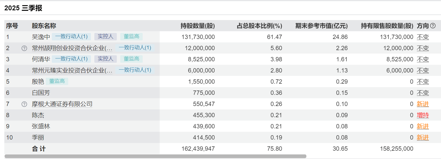 值得一提的是,截至2025年三季报,摩根大通证券有限公司新进成为天元智能前十大股东,持股数量达55.05万股,持股比例达0.26%。