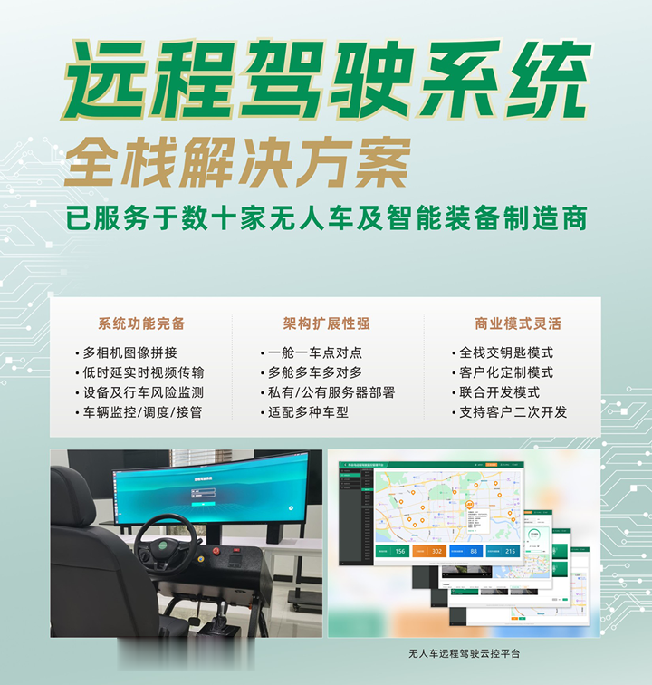 AutoWheel-远程驾驶系统,已广泛应用于“无人车租车、无人物流车、无人环卫车、无人工程机械”等车辆及应用场景。布谷鸟科技,提供系统软硬件全栈解决方案,可按照“一人一舱,一舱多车”的配置,解决自动驾驶车辆在复杂场景下的远程驾驶、远程管理、远程运维,提升系统安全性,提升运营效率,降低运营成本,形成无人驾驶商业闭环。