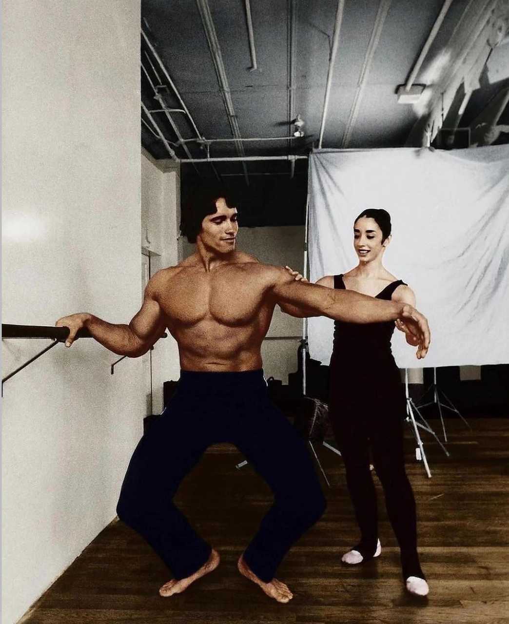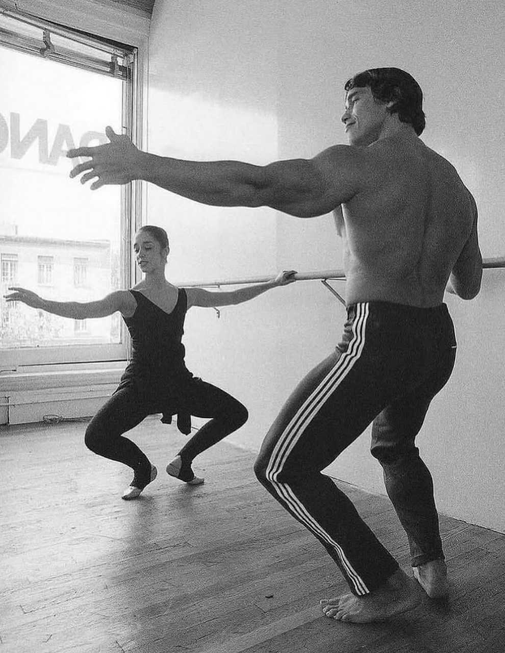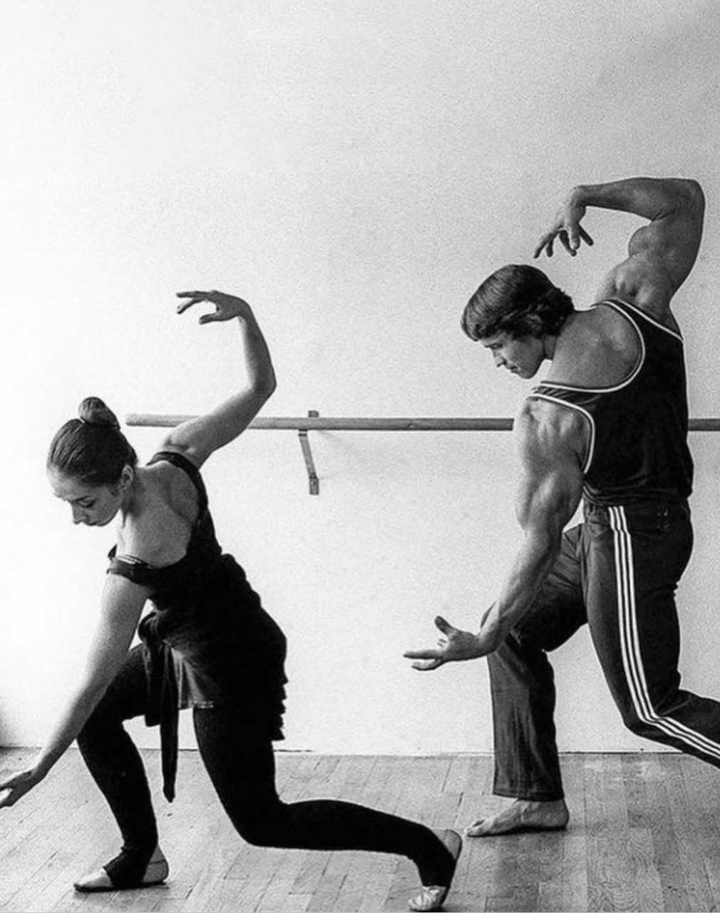【来自投稿】1977年 阿诺德·施瓦辛格为自己参加奥林匹亚先生做准备,他认为健美先生的动作展示应该具备力量与优雅,他聘请了芭蕾舞教师来指导自己的动作,以前从没有健美运动员这么做,最终他获得了冠军