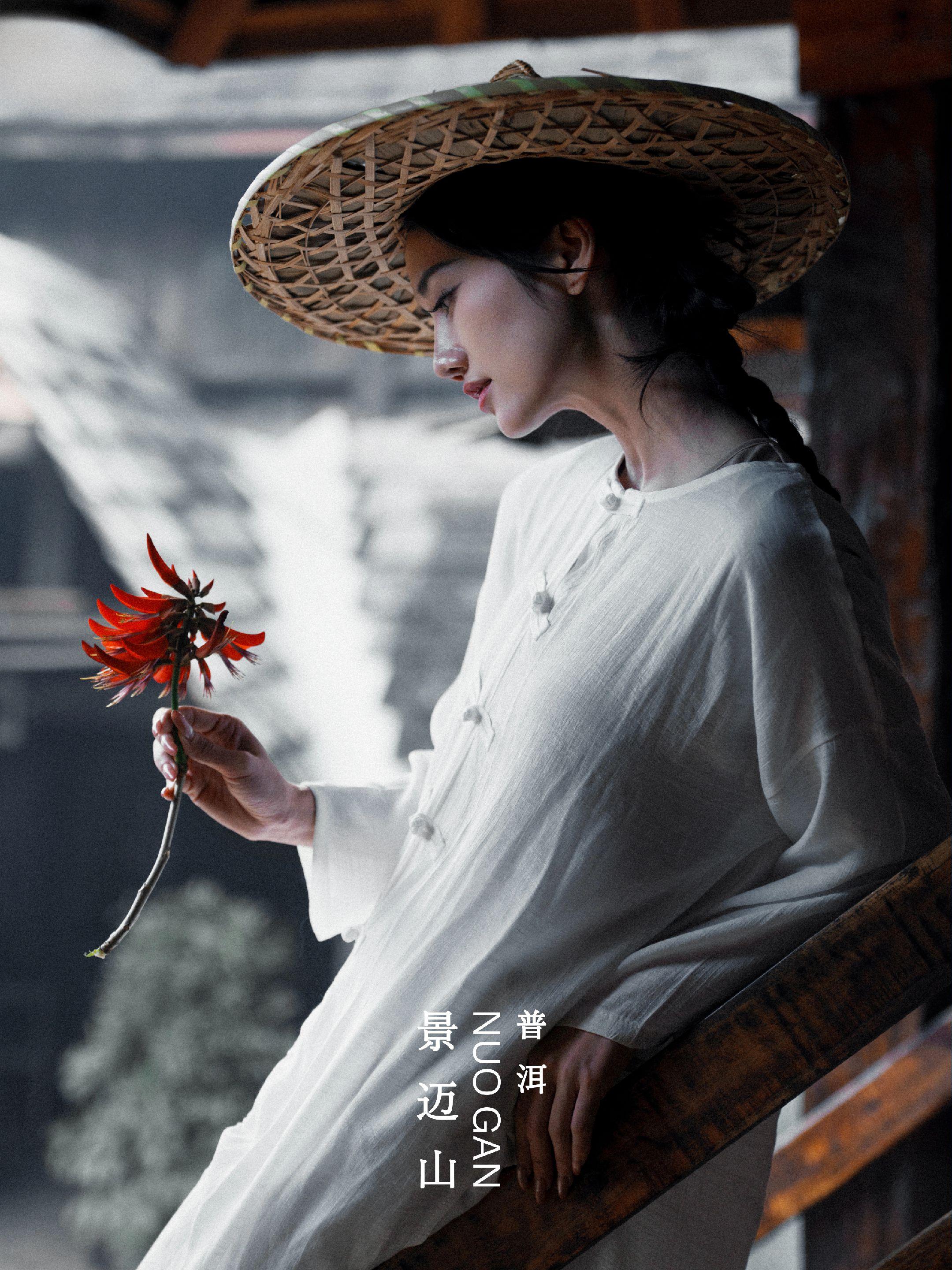 斗笠也遮不住的侠气!除了妆造,画面中有一摸红更能凸显中式美学,这一抹红单独后期调色明度不要那么高,都不会差到哪里去。景迈山糯干古寨后劲真大!