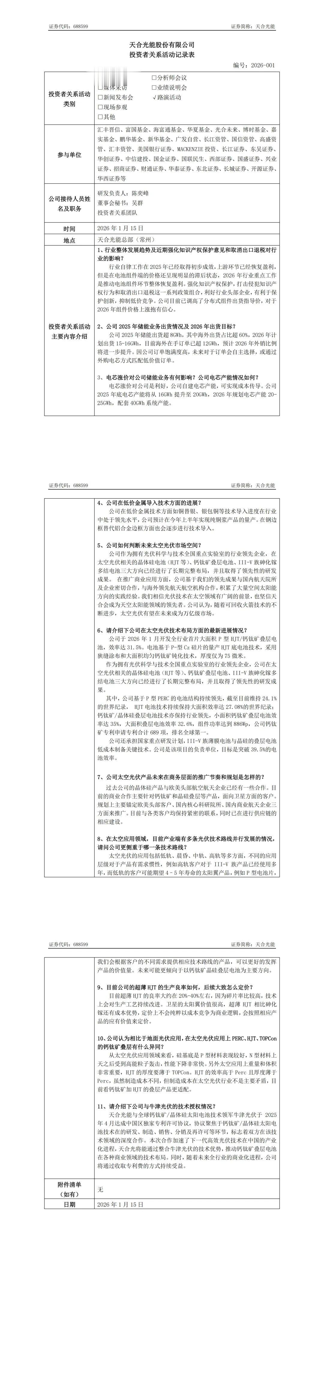 储能与电力市场获悉,近日,天合光能发布投资者关系活动记录表。记录表披露了2025年储能业务出货情况、2026年出货目标以及电芯产能等情况。