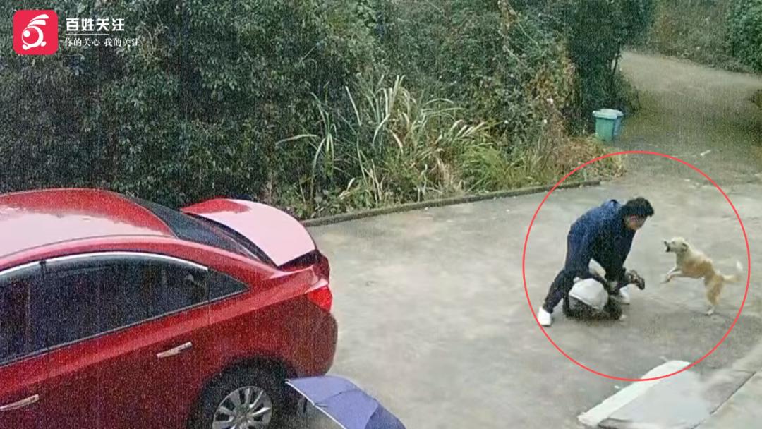 1月18日,湖南长沙浏阳市镇头镇一名孩童被犬只追咬扑倒,幸好家长及时发现并将其驱离。