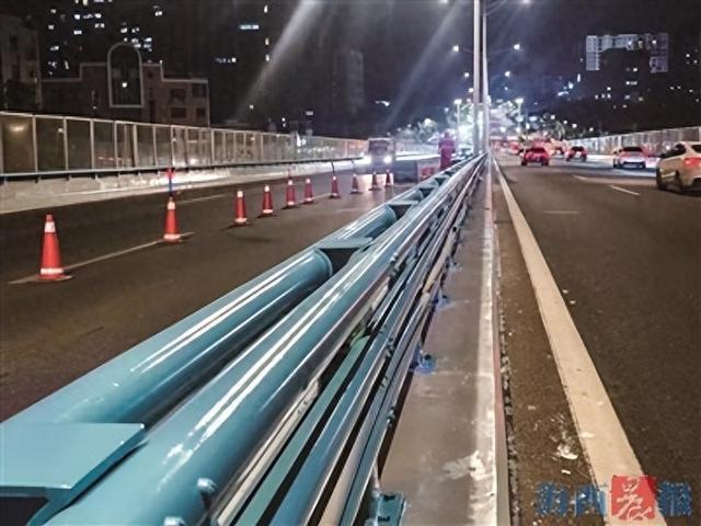 同集南路高架桥护栏换上新涂装。市桥隧中心供图