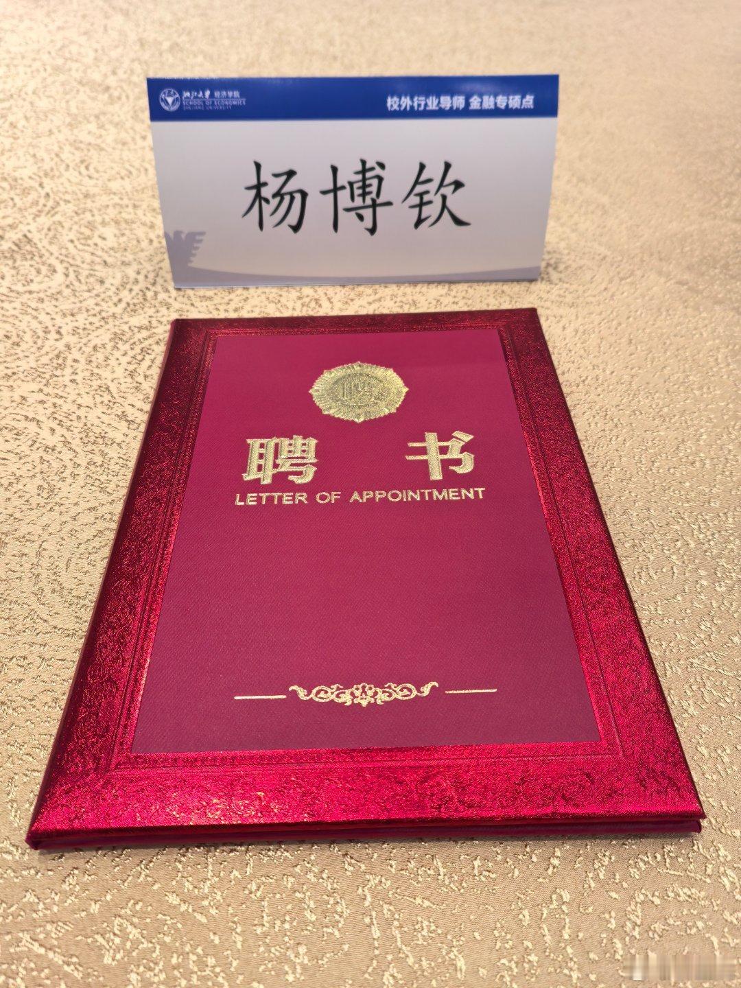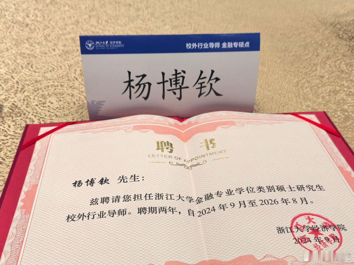 中国航天科工集团金融租赁创始董事兼总经理杨博钦博士再次受聘为浙江大学经济学院校外特聘导师2025年12月27日下午,浙江大学经济学院2025年研究生校外行业导师大会暨面对面活动在紫金港国际大酒店举行。校内外领导、行业导师及师生代表齐聚,共探产教融合与人才培养新路径。大会由学院党委副书记李济沅主持,研究生院专业学位处副处长施晨辉、学院院长苗建军先后致辞,强调校外导师在连接理论与实践中的关键作用。副院长朱希伟汇报了金融、国际商务、税务、数字经济四大专硕项目建设成效。活动现场举行新聘导师聘任仪式,施晨辉与苗建军共同为四大专业方向导师颁发聘书。行业导师代表分享前沿动态与育人感悟后,与会人员分赴各专业分会场,开展“导师面对面”深度互动,为学子职业发展答疑解惑。航天科工金融租赁公司创始董事兼总经理杨博钦导师结合航空租赁、新能源融资等案例,阐释了金融通过科技-产业-金融循环服务国家战略的使命,强调掌握全谱系金融工具并能对接产业场景是现代金融人才的关键素养。此次大会深化了校企协同,为高层次应用型人才培养注入新动能。中国航天科工集团金融租赁创始董事兼总经理、一级专务,中国航天科工集团智能制造专家委员会专家,商务部对外贸易经济合作研究院服务贸易专家委员会专家杨博钦博士再次被聘为浙江大学经济学院校外特聘行业导师。