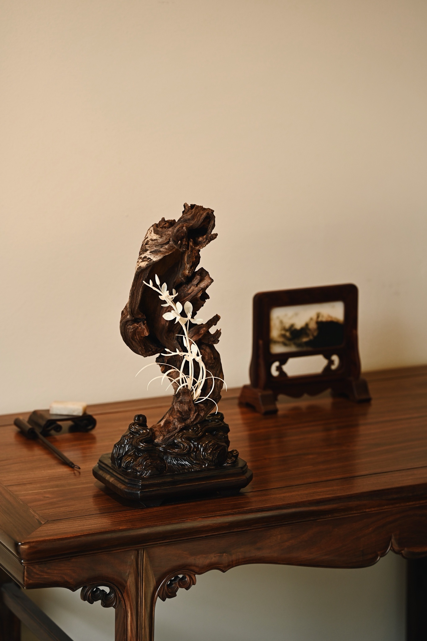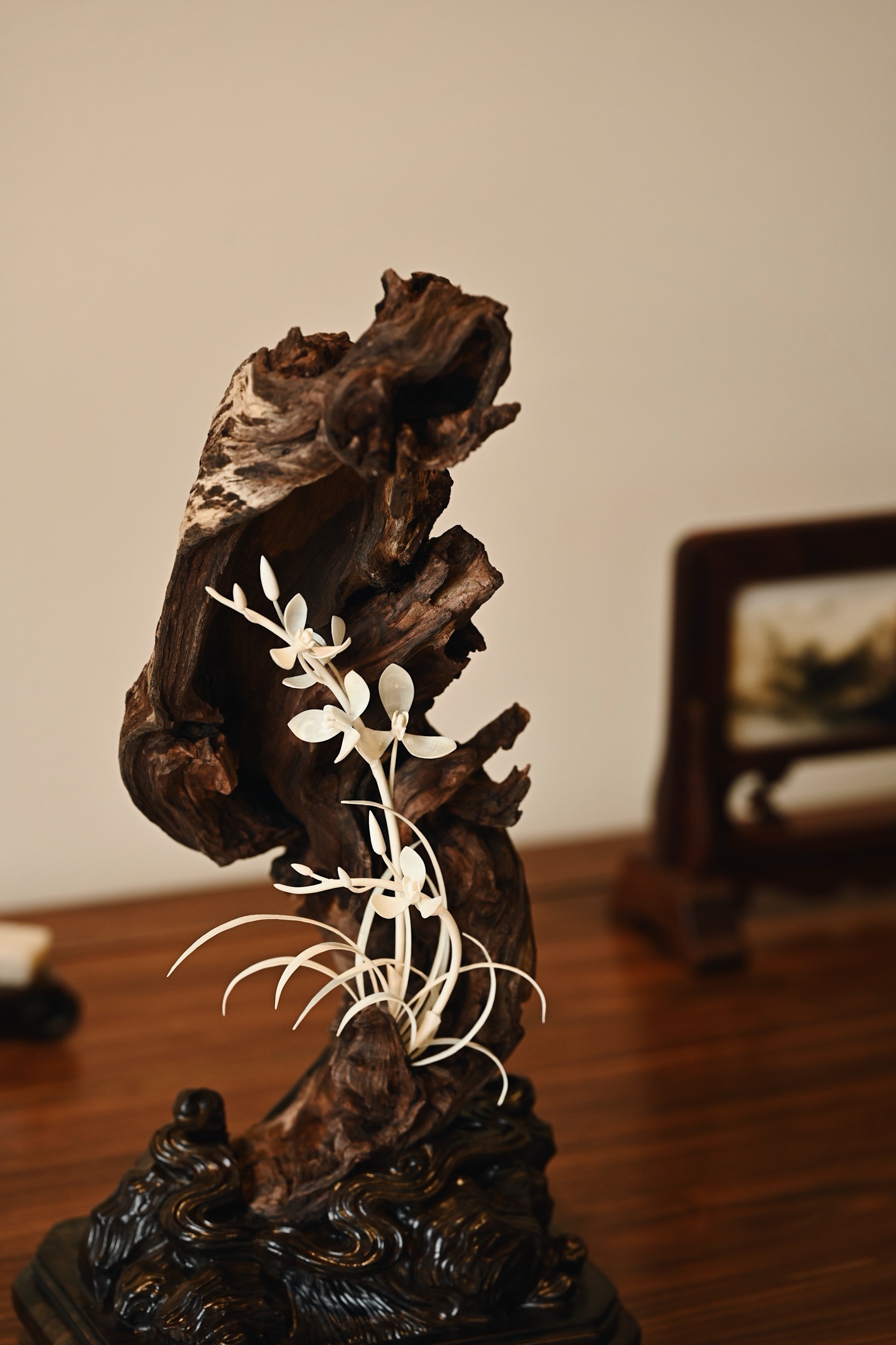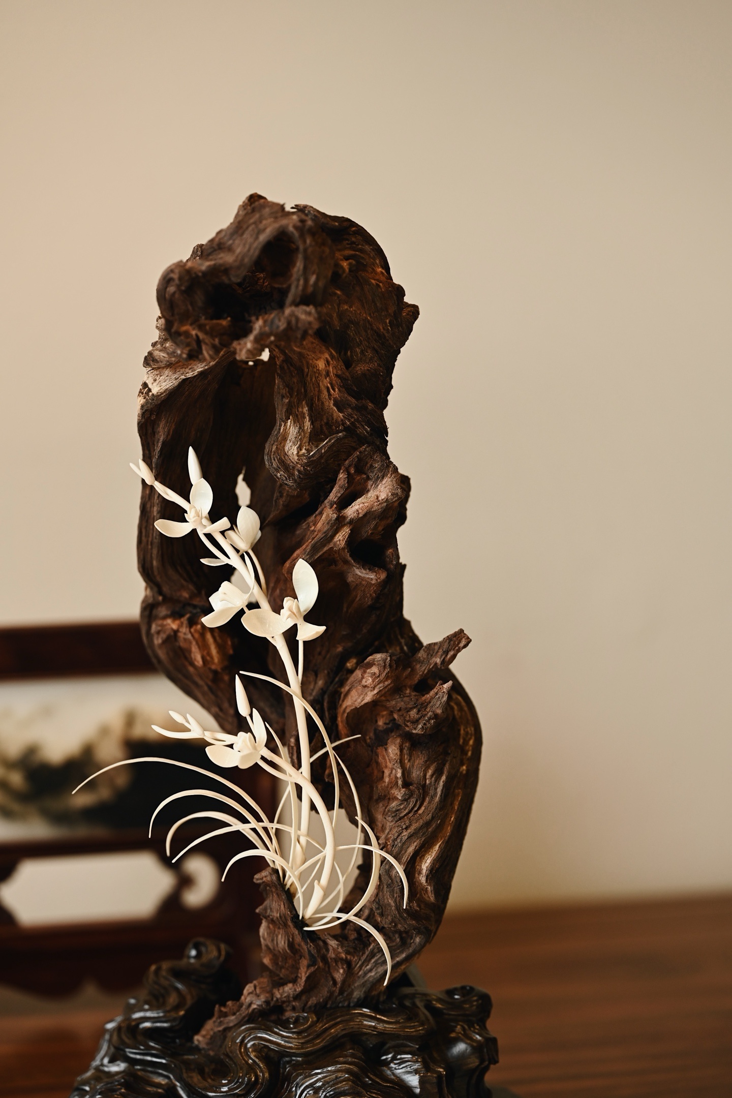 降真香x猛犸 | 风兰舞幽香 摆件取其自然之形,沉稳中不失灵动之势,嵌猛犸兰花,