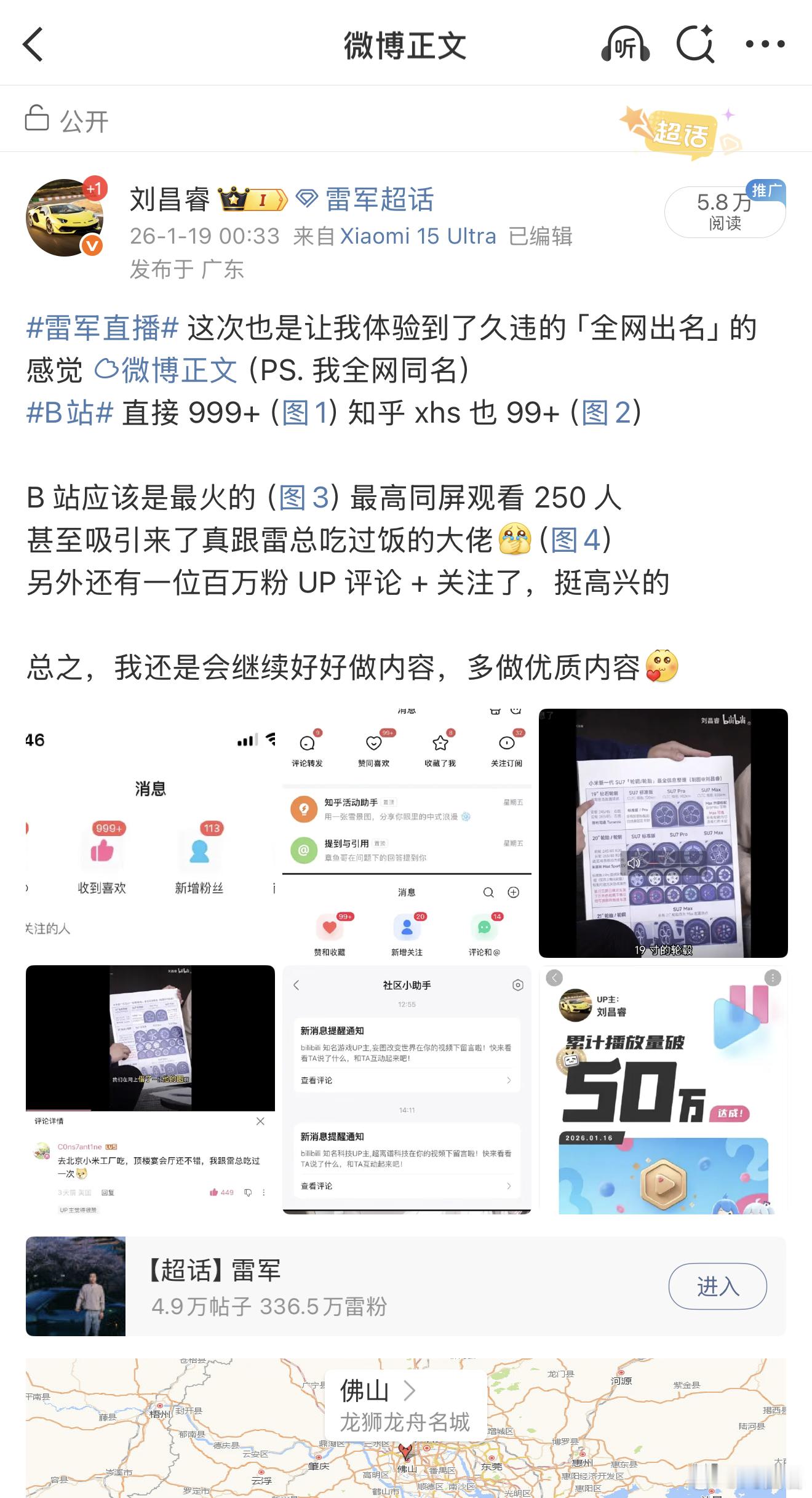 看来昨晚我发这次 雷军直播 事件的回顾发早了今天白天有人给我的 B 站视频投了必火推广🔥现在已经 9.2 万播放了(这个点还有 100+ 人同屏)破十万稳了 佛山