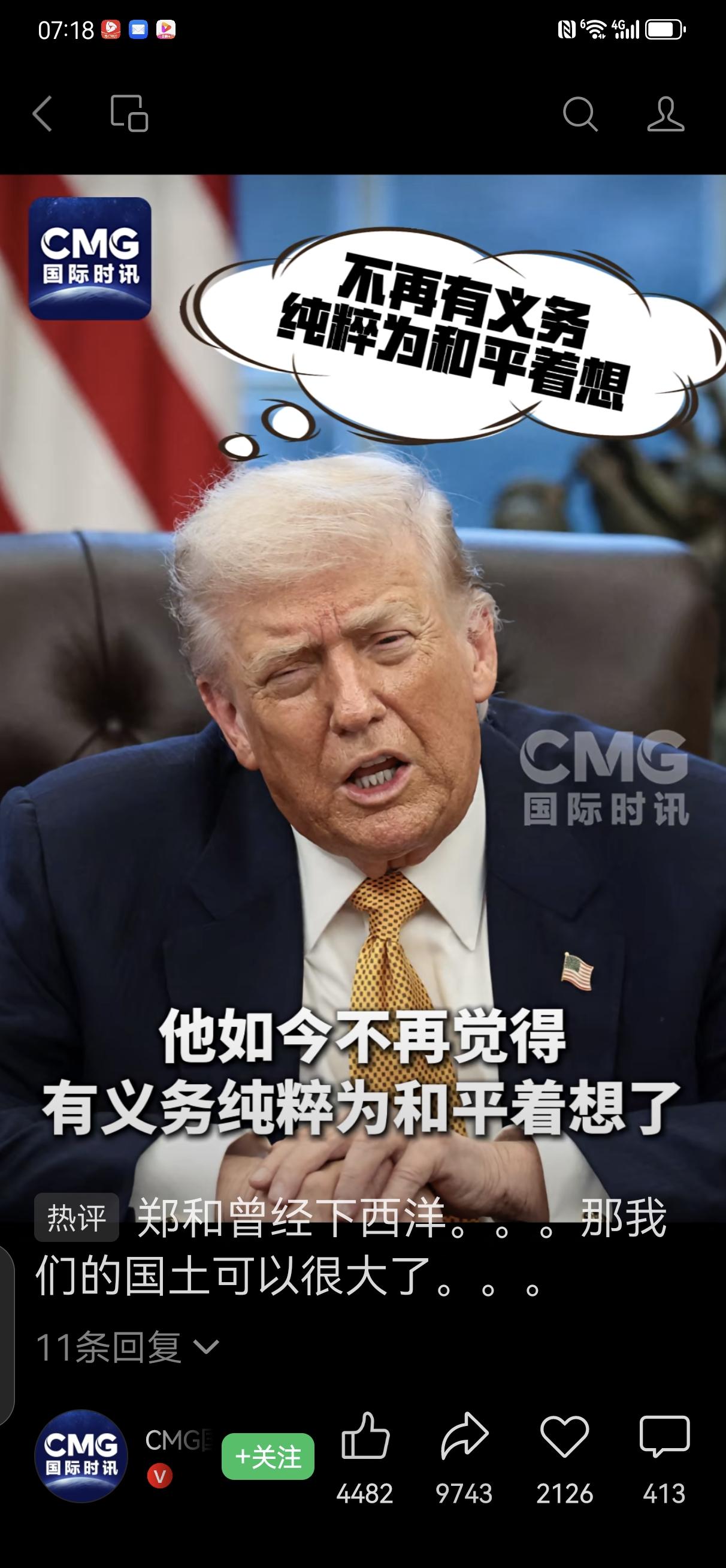 闻思录‖川普:为什么抢格陵兰?因为挪威不给我诺奖,再说“美国的船也到过那里” 当诺贝尔和平奖的荣誉未能如期垂青,特朗普用一封致挪威首相斯特勒的信函,将霸权逻辑的遮羞布撕得粉碎。1月18日,这位前美国总统公然宣称,既然挪威拒绝授予他和平诺奖,他便无需再“纯粹为和平着想”,转而聚焦“对美国有利”的现实诉求——而这份诉求的核心,竟是对格陵兰岛的动手。 川普质问挪威首相:“丹麦凭什么拥有格陵兰?不过是几百年前有艘船登陆过!美国的船也到过那里。”这番强盗逻辑,堪称近代国际关系史上的荒诞注脚。 按照这一逻辑,郑和下过的西洋都应该是中国的。若此逻辑成立,世界版图早已沦为弱肉强食的混乱棋局,所谓的主权平等、国际法准则,都将沦为霸权者随意践踏的废纸。特朗普似乎忘了,领土主权的合法性,植根于长期的历史传承、国际社会的普遍承认,而非一次偶然的航海登陆;更忘了和平奖的授予,表彰的是为人类福祉、国际争端解决作出的实质性贡献,而非霸权行径的自我标榜。 更令人咋舌的是,他竟将北约捆绑为私器,宣称“自北约成立以来,我的贡献超越任何人,现在北约该为美国做点什么了”。这番说辞暴露了其对国际组织的功利化认知:北约本是基于集体安全理念建立的多边机制,却被特朗普异化为“美国予取予求的工具”。他甚至抛出“美国不控制格陵兰,世界就不安全”的谬论,将领土掠夺包装成“维护安全”的正义之举,这种颠倒黑白的话术,与海盗时代“烧杀抢掠为扩张”的强盗逻辑如出一辙。 从索要和平奖未果便翻脸抢地,到将国际组织当私产、将霸权行为合理化,特朗普的言论彻底撕下了“文明国家”的伪装,露出了赤裸裸的海盗嘴脸。 特朗普以“船到过”为由掠夺领土、以“贡献大”为由绑架盟友的霸权行径,注定遭到世界人民的反对,也终将在历史的审判台上留下耻辱的印记。 美国占格陵兰岛 格陵兰不是美国的“囊中之物”,国际秩序更不是霸权者的“后花园”,特朗普的荒诞闹剧,不过是霸权主义穷途末路的又一次拙劣表演。 俄罗斯梅德韦杰夫神评:让美国伟大,就是让丹麦变小。