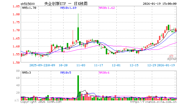 1月19日,央企创新ETF(515600)涨1.30%,成交额442.88万元。当日份额减少100.00万份,最新份额为11.28亿份,近20个交易日份额减少2900.00万份。最新资产净值计算值为19.31亿元。
