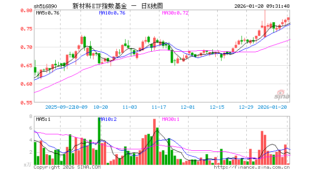 新材料ETF指数基金(516890)业绩比较基准为中证新材料主题指数收益率,管理人为平安基金管理有限公司,基金经理为刘洁倩、马浩然,成立(2021-07-09)以来回报为-22.92%,近一个月回报为12.92%。