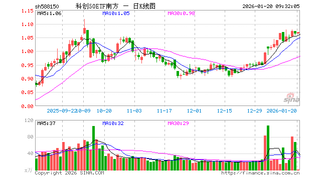 1月20日,科创50ETF南方(588150)开盘涨0.00%,报1.064元。科创50ETF南方(588150)重仓股方面,中芯国际开盘跌0.23%,海光信息涨1.97%,寒武纪跌0.19%,澜起科技跌0.68%,中微公司跌0.79%,联影医疗涨0.48%,金山办公涨0.87%,芯原股份跌0.18%,石头科技跌0.13%,传音控股跌0.35%。