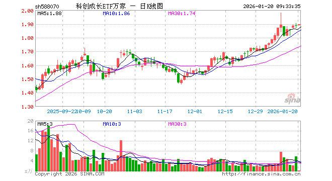 科创板成长ETF(588070)业绩比较基准为上证科创板成长指数收益率,管理人为万家基金管理有限公司,基金经理为吴宜蓉,成立(2024-11-06)以来回报为88.69%,近一个月回报为15.82%。