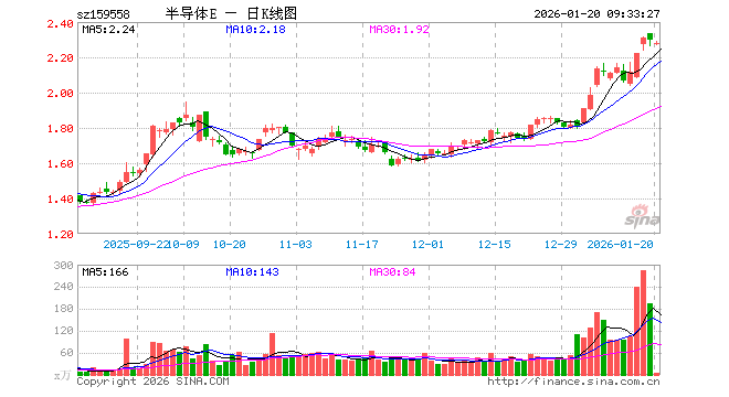 1月20日,半导体设备ETF易方达(159558)开盘跌1.09%,报2.269元。半导体设备ETF易方达(159558)重仓股方面,中微公司开盘跌0.79%,北方华创跌0.55%,长川科技跌0.79%,沪硅产业跌0.35%,华海清科跌0.71%,拓荆科技跌0.80%,南大光电跌0.65%,安集科技涨0.05%,中科飞测涨1.18%,芯源微跌1.98%。