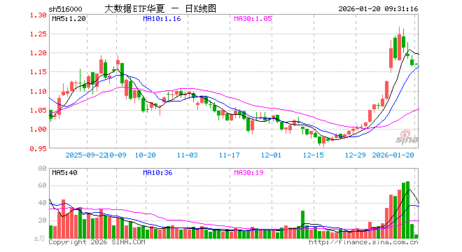 1月20日,大数据ETF华夏(516000)开盘涨0.26%,报1.169元。大数据ETF华夏(516000)重仓股方面,中科曙光开盘跌0.04%,科大讯飞涨0.74%,浪潮信息跌0.05%,紫光股份跌0.11%,恒生电子涨1.00%,拓维信息涨0.24%,润泽科技涨1.04%,中国长城涨2.28%,用友网络涨1.28%,深信服涨1.66%。