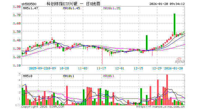 科创综指ETF兴银(589580)业绩比较基准为上证科创板综合价格指数收益率,管理人为兴银基金管理有限责任公司,基金经理为林学晨,成立(2025-05-27)以来回报为47.84%,近一个月回报为16.98%。