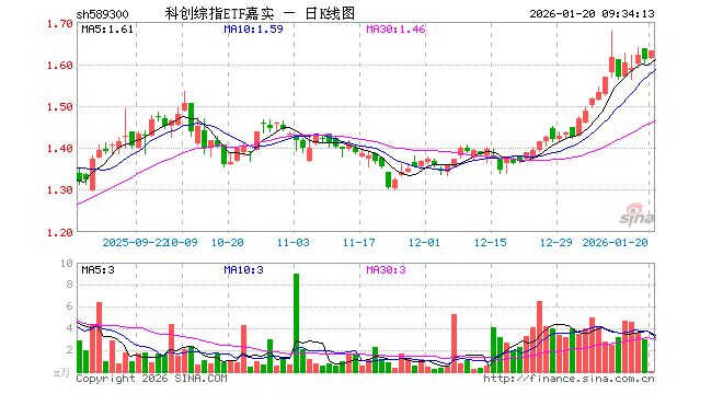 科创综指ETF嘉实(589300)业绩比较基准为上证科创板综合指数收益率,管理人为嘉实基金管理有限公司,基金经理为尚可,成立(2025-04-09)以来回报为60.93%,近一个月回报为17.74%。