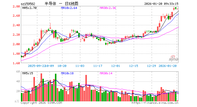 1月20日,半导体产业ETF(159582)开盘跌0.15%,报2.736元。半导体产业ETF(159582)重仓股方面,中微公司开盘跌0.79%,北方华创跌0.55%,寒武纪跌0.19%,中芯国际跌0.23%,海光信息涨1.97%,长川科技跌0.79%,华海清科跌0.71%,拓荆科技跌0.80%,南大光电跌0.65%,安集科技涨0.05%。