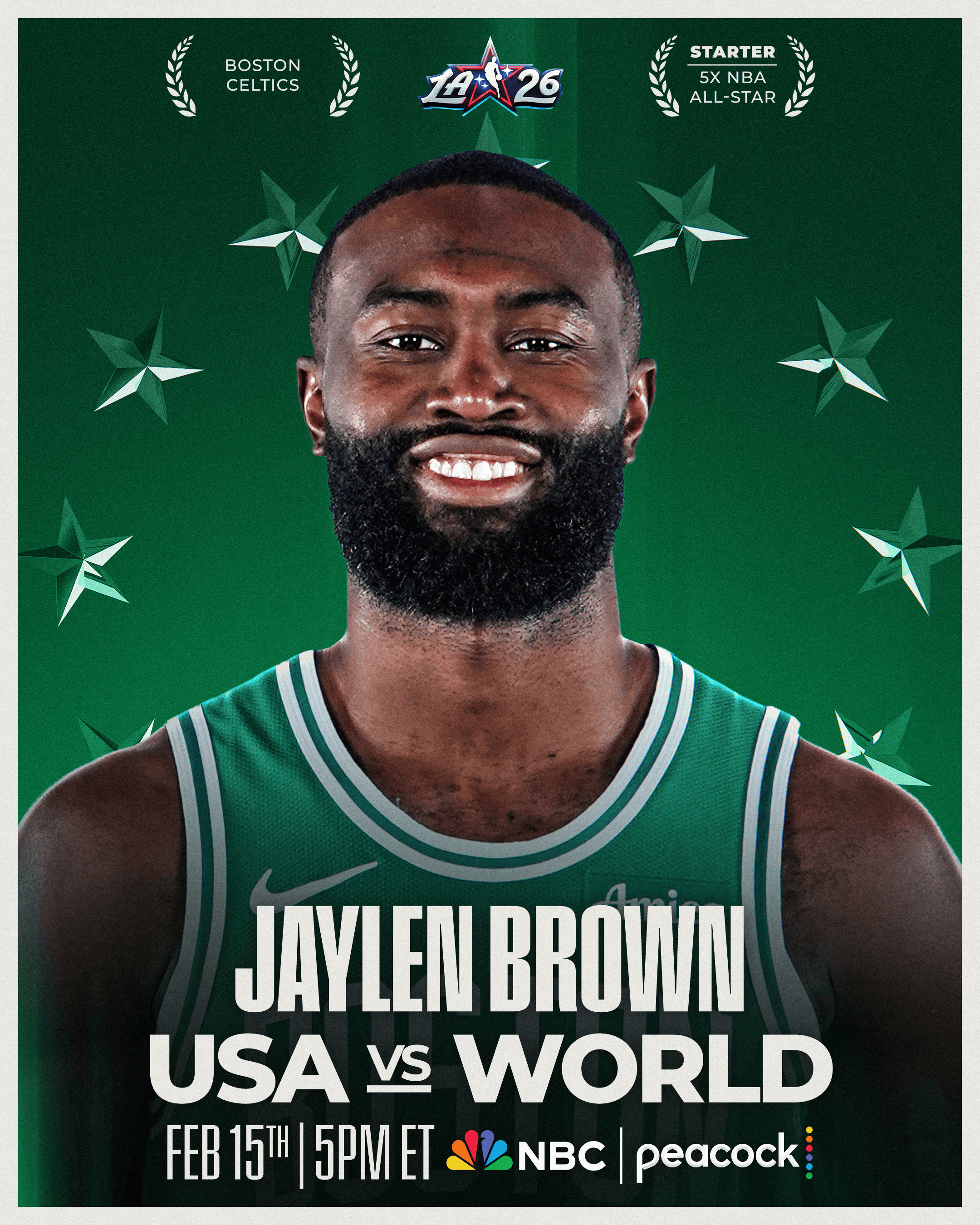 杰伦-布朗生涯第5次入选全明星,也是生涯第1次全明星首发。