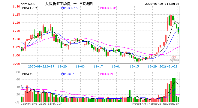 1月20日,截止午间收盘,大数据ETF华夏(516000)跌2.40%,报1.138元,成交额1524.16万元。大数据ETF华夏(516000)重仓股方面,中科曙光截止午盘跌2.12%,科大讯飞跌3.69%,浪潮信息跌1.87%,紫光股份跌2.59%,恒生电子跌1.22%,拓维信息跌0.92%,润泽科技跌0.10%,中国长城涨0.74%,用友网络跌3.14%,深信服跌1.13%。