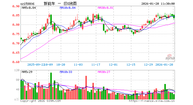1月20日,截止午间收盘,新能源车ETF(159806)跌1.30%,报0.834元,成交额1657.84万元。新能源车ETF(159806)重仓股方面,宁德时代截止午盘涨0.97%,汇川技术跌0.83%,亿纬锂能跌2.66%,比亚迪跌1.36%,三花智控跌0.32%,华友钴业跌2.30%,赣锋锂业跌0.46%,先导智能跌4.50%,长安汽车跌0.34%,天赐材料跌2.29%。