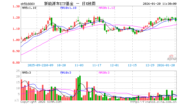 1月20日,截止午间收盘,新能源车ETF基金(516660)跌1.77%,报1.165元,成交额198.31万元。新能源车ETF基金(516660)重仓股方面,宁德时代截止午盘涨0.97%,汇川技术跌0.83%,比亚迪跌1.36%,亿纬锂能跌2.66%,三花智控跌0.32%,华友钴业跌2.30%,赣锋锂业跌0.46%,先导智能跌4.50%,长安汽车跌0.34%,天赐材料跌2.29%。