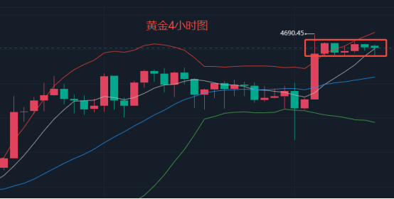 昨天黄金高开上涨收阳线,日线级别机构上仍处于主升浪结构当中,上方压力4725,下方支撑4625,4690顶部形态不好,后期向上突破概率大,以做北为主。