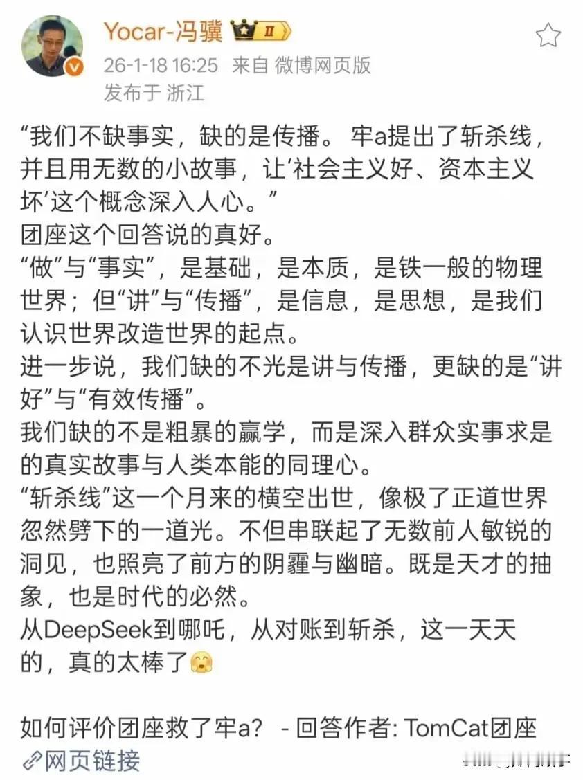 黑神话的制作人冯骥,在华中科技是生物医学工程专业的。 毕业后去做了华人世界目前的游戏巅峰黑神话悟空。 从他的专业角度看牢A,应该是与普通人的认知常识是有区别的。他和牢A讲述的事情,专业最接近。 我看了很多头条创作者转发他的微博做了解读,有点意外。 解读他的头条创作者很多应该是阅读理解不及格,高考语文考不到90分的水准。 不过,冯骥也是八零后,可能八零后更了解他吧,看头条毕竟老年人多,写头条的毕竟大中专以下的多。