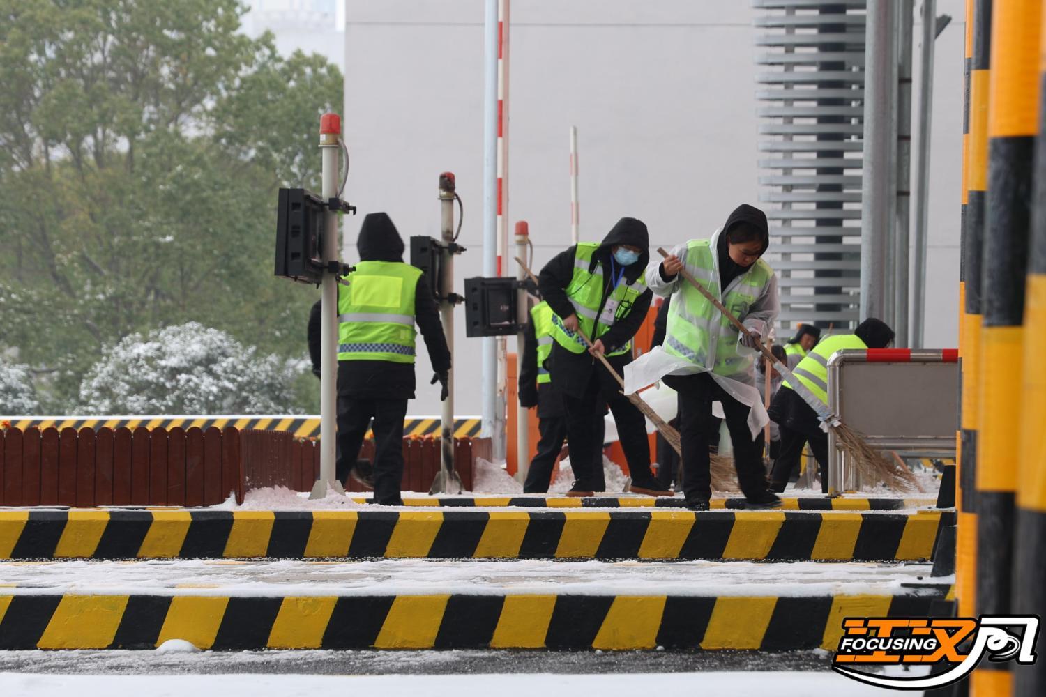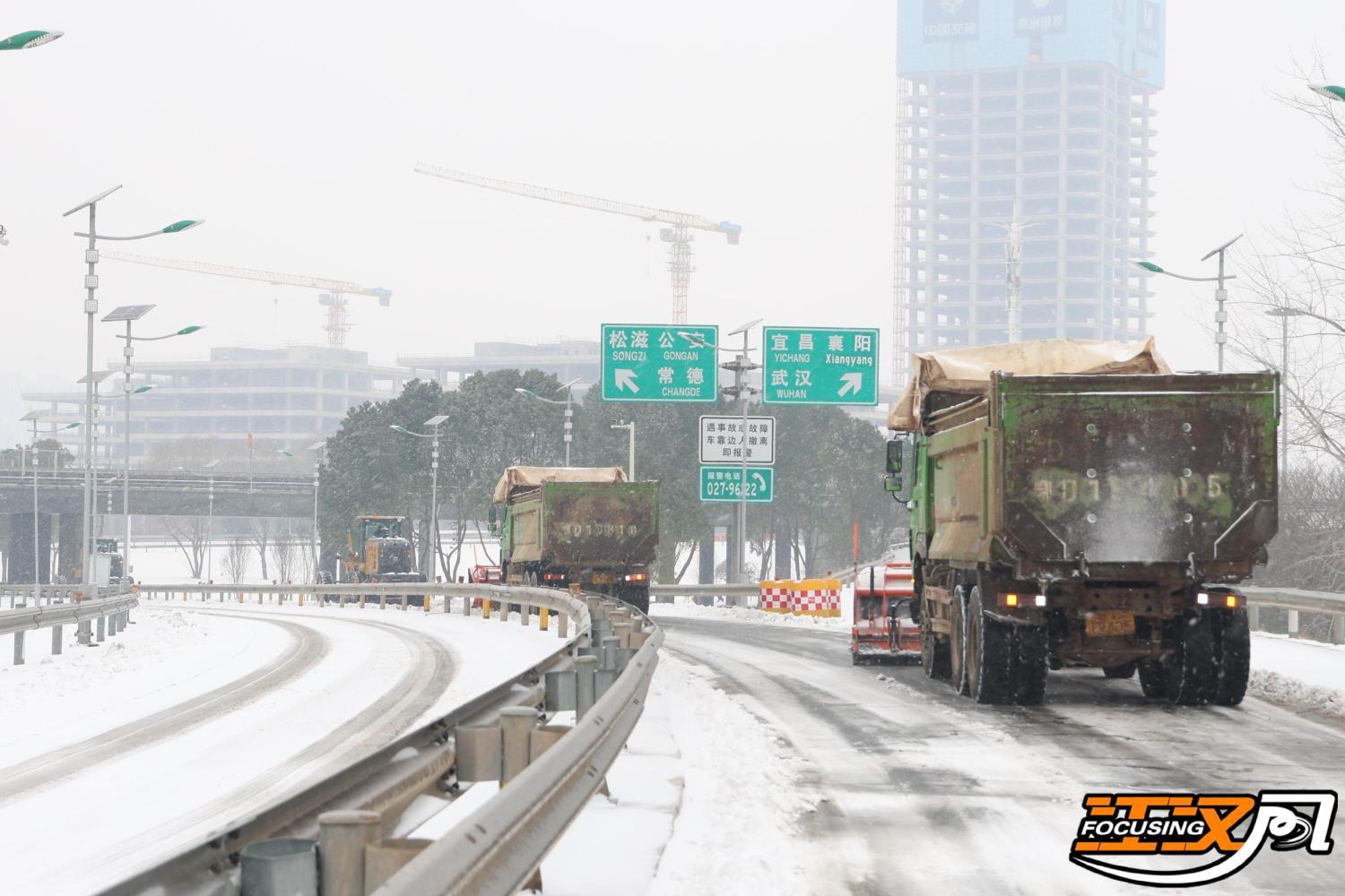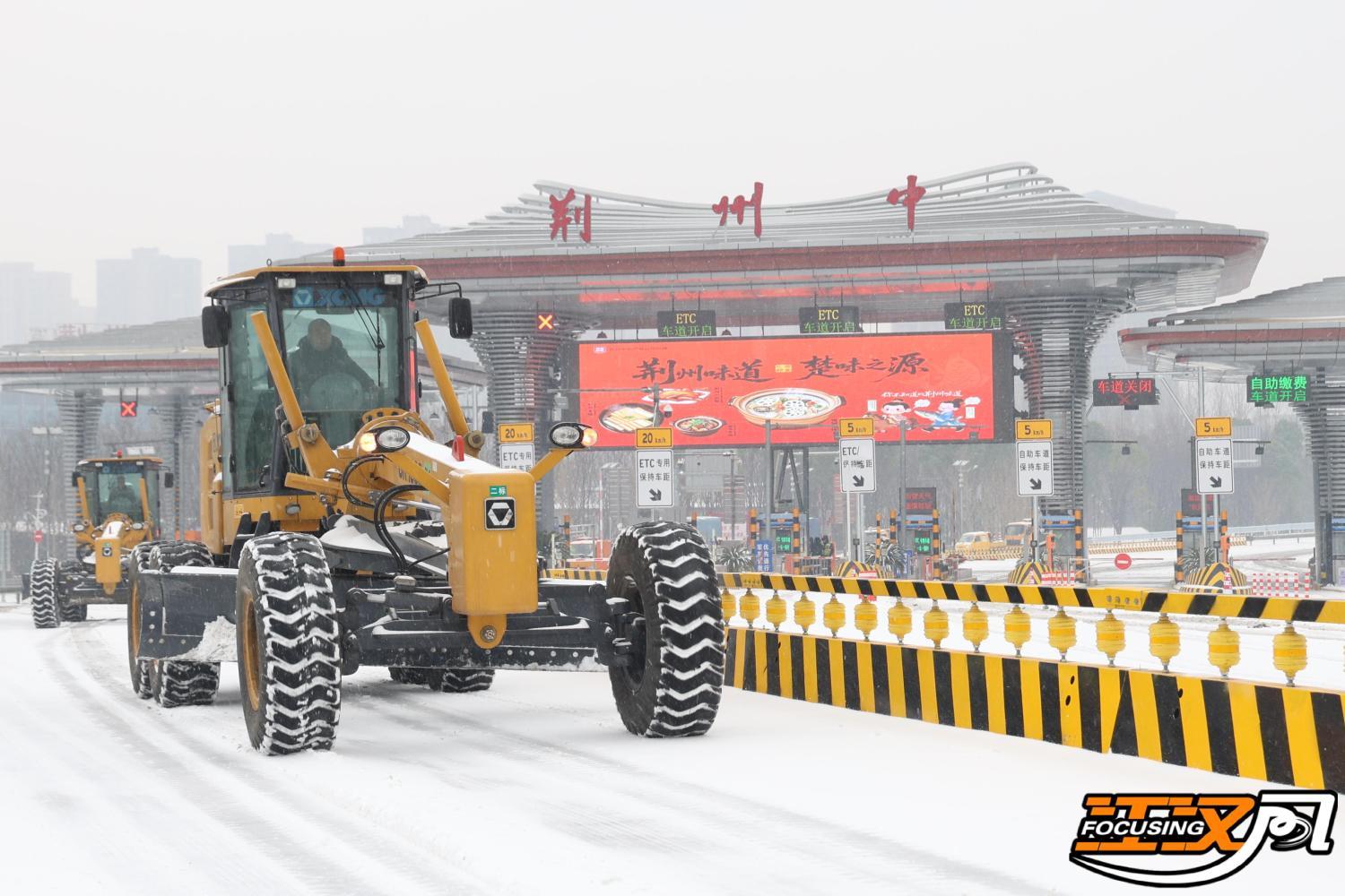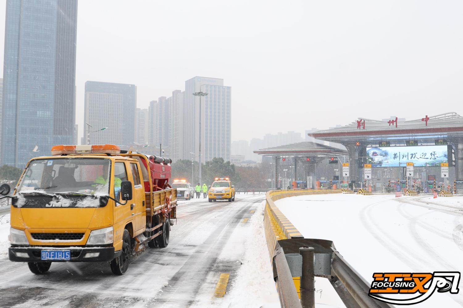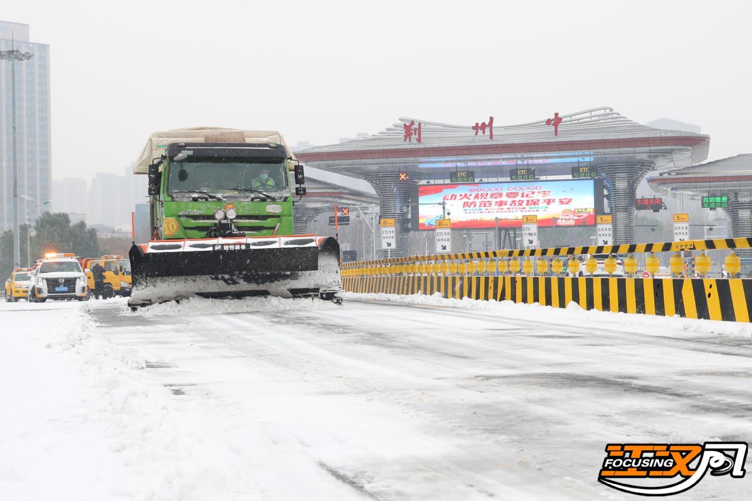 1月20日上午,融雪车在荆州市路桥巡检路产巡检大队工作人员指挥下,在二广高速荆州中北入口段进行融雪作业。(记者:张梦瑶潘路摄)