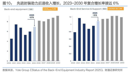 YoleGroup在报告中指出,2025年后端设备总收入约70亿美元,预计到2030年将超过90亿美元,年复合增长率接近6%。
