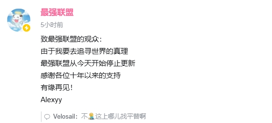 该UP主1月9日后一度停更,1月13号自称要去寻找世界真理,而网友表示“最强联盟”已经赚了1500万,可1月16号“最强联盟”表示爆仓回归。