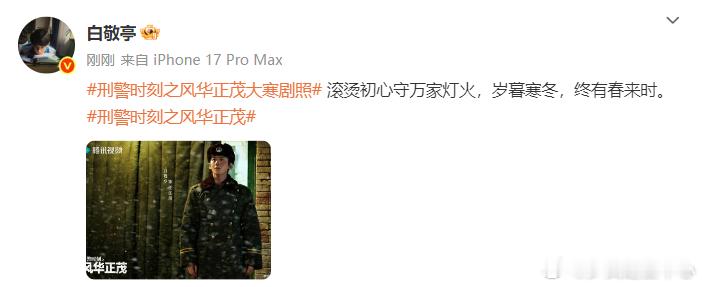 白敬亭滚烫初心守万家灯火 白敬亭滚烫初心守万家灯火 白敬亭《刑警时刻之风华正茂》大寒剧照来啦,期待和任江川见面呀~