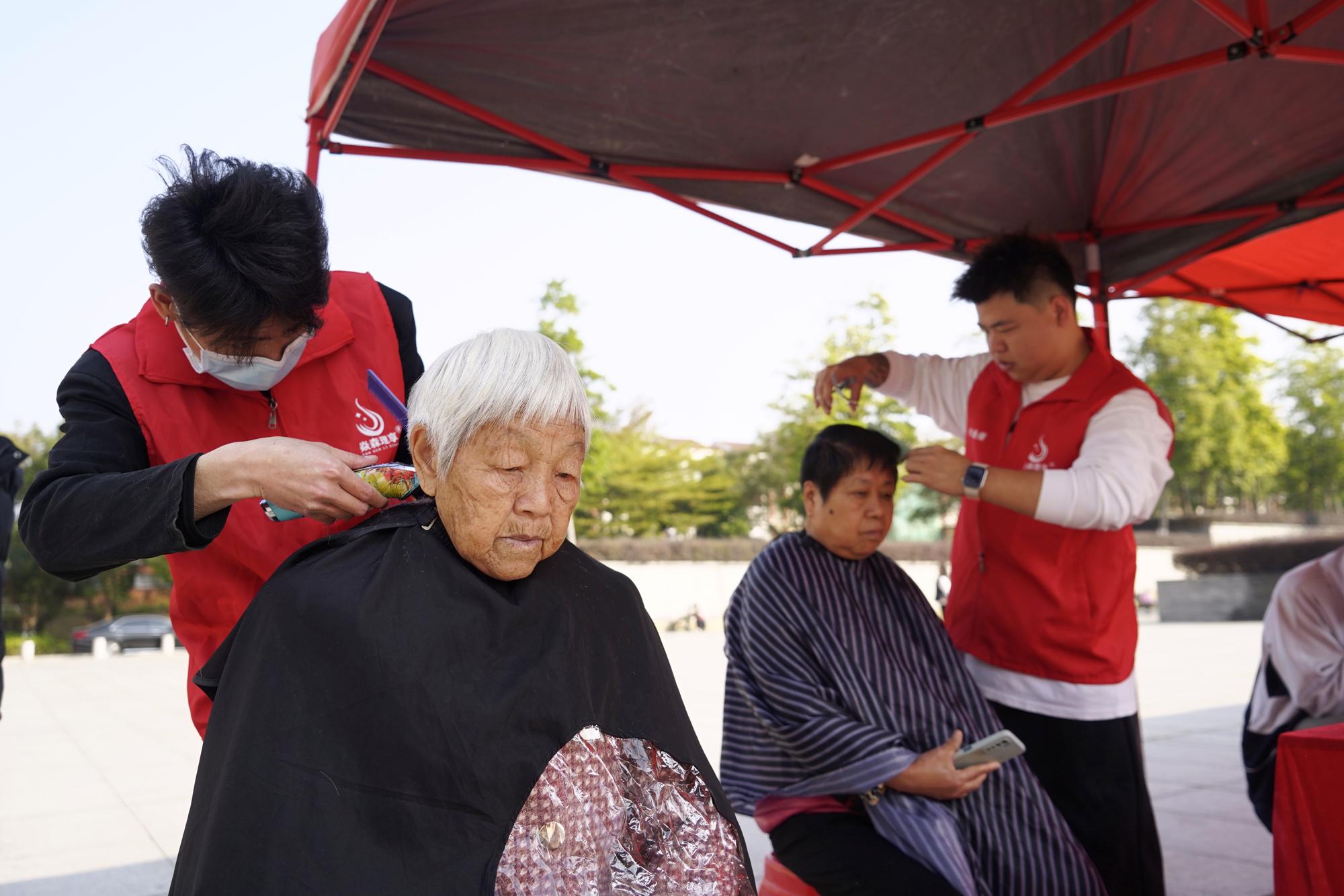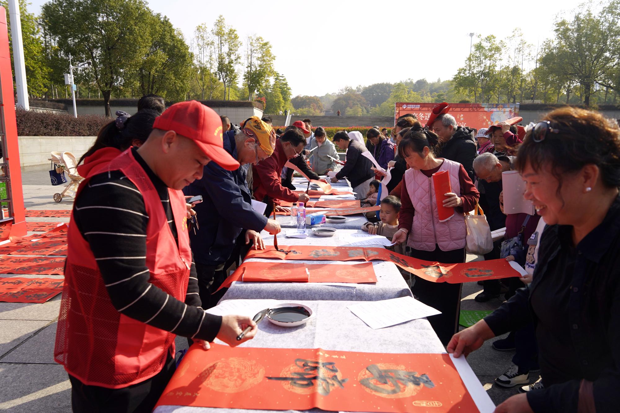 活动现场,春联书写区,书法家现场挥毫,刚写好的春联被小心晾晒,市民排队挑选联句;义诊义剪区里,市中医院等单位的医护人员为市民提供中医把脉、眼科检查、牙科咨询等服务,理发师则为市民免费修剪头发。