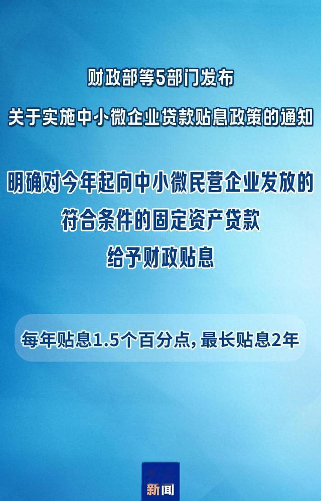 1月20日,财政部等5部门对外发布通知,明确实施中小微企业贷款贴息政策。