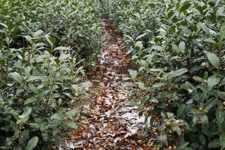 在他看来,眼下这场雪,像是给茶园悄悄盖了层“棉被”,反倒能让茶味更足。