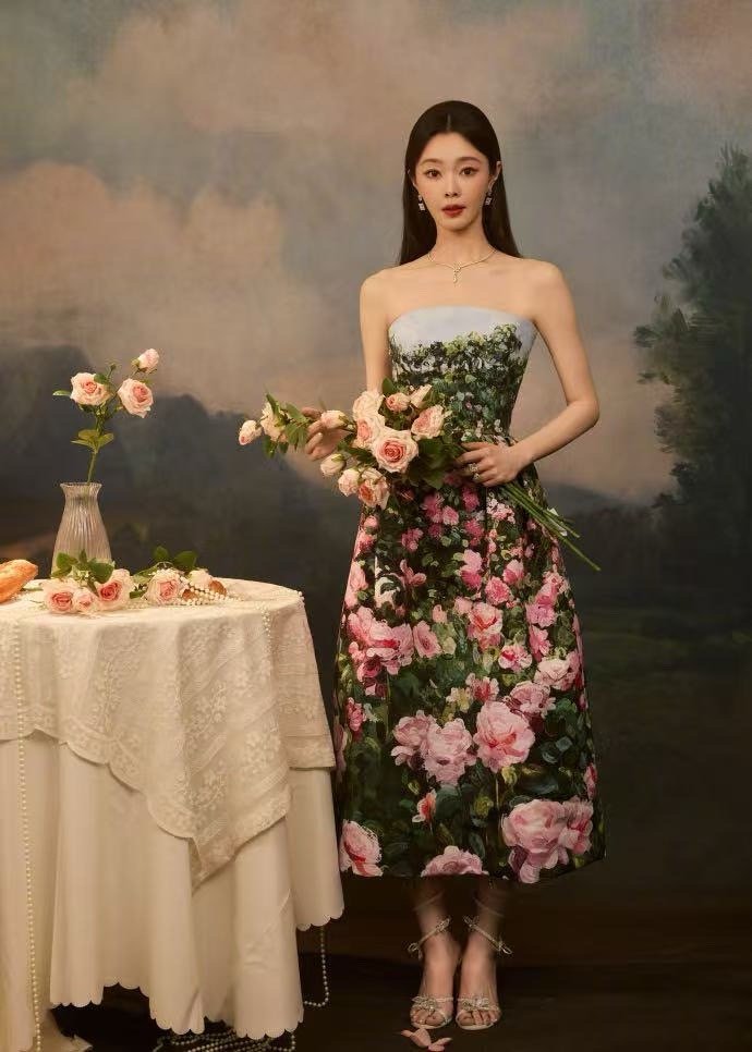 宋轶的裙子上有99朵玫瑰花 把鲜花穿成艺术!宋轶这条玫瑰裙太绝了,99朵玫瑰错落有致,将她衬托得宛如花中精灵。手捧同款玫瑰,整个造型和谐又充满巧思,这审美水准堪称满分。
