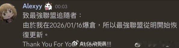 光速爆仓致敬MLXG🤣最强联盟宣布回归了 赚1500万3天后爆仓今日B站知名LOL赛事集锦博主宣布复更,原因爆仓。该UP主1月9日后一度停更,1月13号自称要去寻找世界真理,而网友表示“最强联盟”已经赚了1500万,可1月16号“最强联盟”表示爆仓回归。2026LPL英雄联盟S16英雄联盟